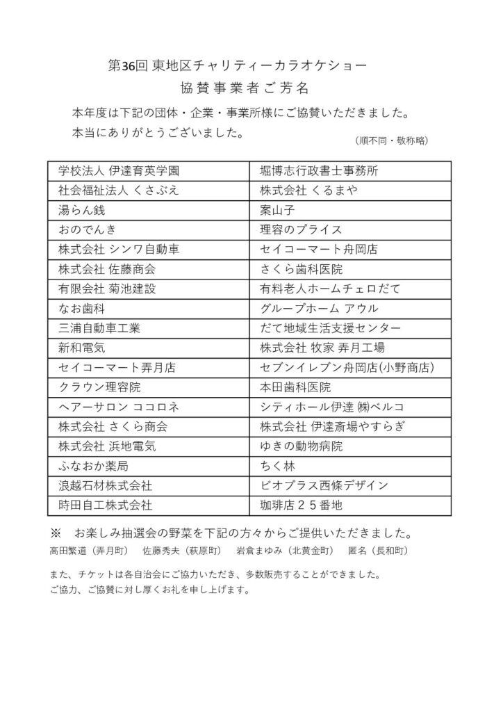 新着情報(チャリティカラオケショー協賛企業・事業所一覧)